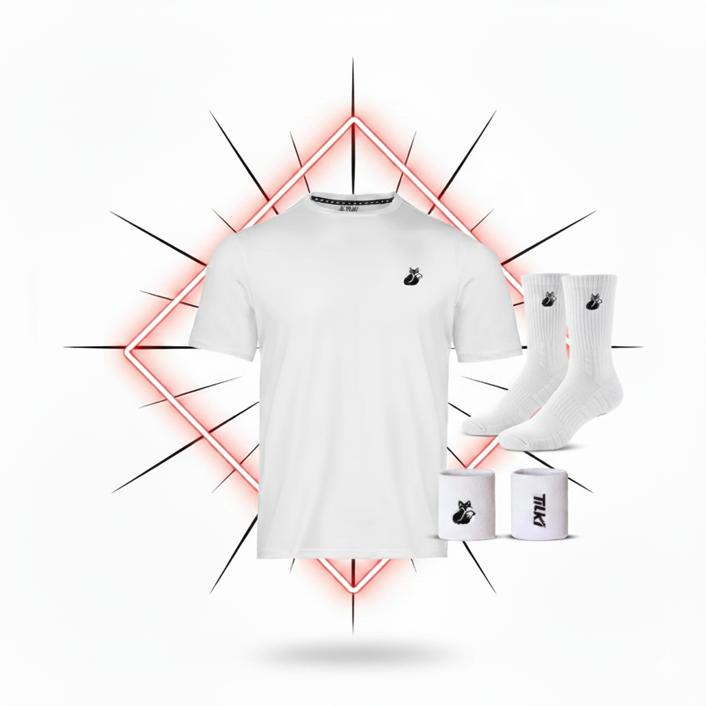 Concentrado en la victoria. La polera técnica te mantiene seco, las muñequeras controlan el sudor y las calcetas te dan el confort necesario. El kit ganador.